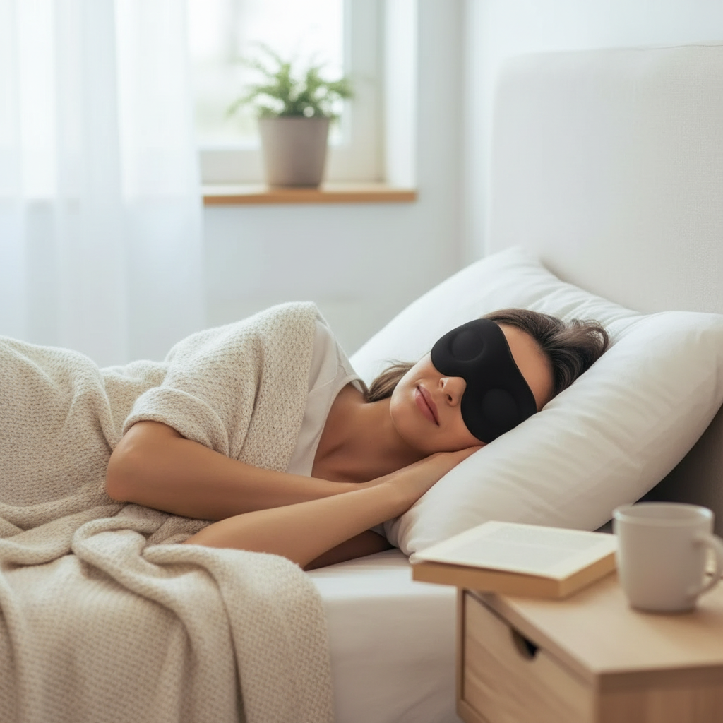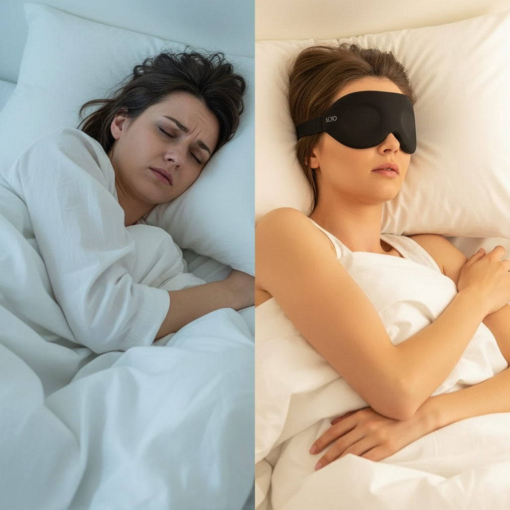 Notre masque 3D révolutionnaire bloque toute lumière sans jamais toucher vos yeux. Confort absolu pour des nuits vraiment réparatrices.